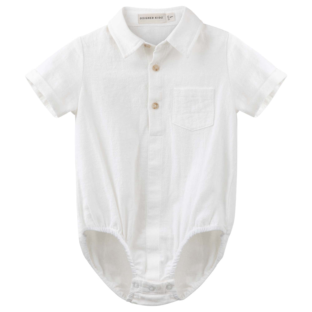 The Archie S/S Button Romper features a tailored collar, front button openings and a snap button closure at the base. Can be paired with the Finley Linen Shorts, bow tie and suspenders for the perfect special occasion look for your little man.