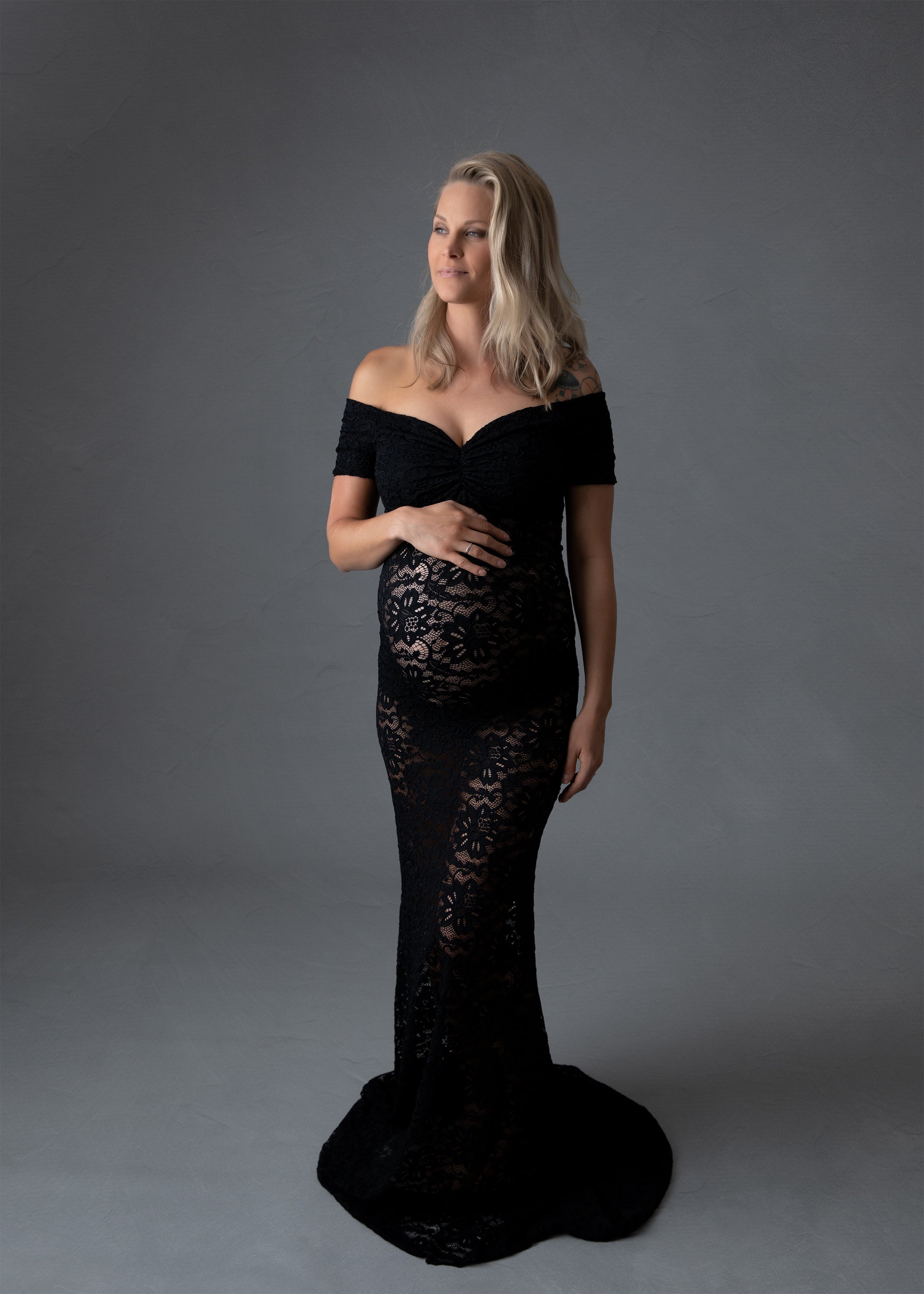 Florence is one of our best selling dresses with a rouched bodice and off the shoulder sleeves. This gown has a double lace layer bodice/sleeve for lining and the skirt is unlined to allow you use the patterned lace feature on the belly.